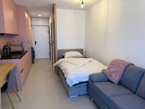 Ponúkame na prenájom apartmán s terasou v blízkosti Novej nemocnice. Byt sa prenajíma kompletne zariadený, presne tak, ako je vidieť na fotografiách. V byte ešte nikto nebýval, ide o úplne nový priestor.